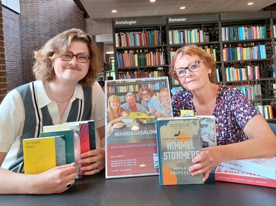 Litteraturformidler Mads Joakim Skovgaard Holm og bibliotekar Marit Skovbakke Juhl anbefalede bøger til mandagssalonen under bibliotekets efterårstema: LUFT